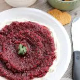 Cranberry Salsa is spicy, sweet, and served over a bed of cream cheese. Smother it on some crackers for a delicious holiday appetizer for Christmas or New Year’s Eve.