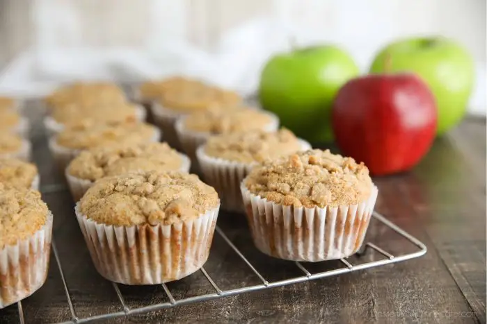 This recipe for Apple Cinnamon Muffins is delicious! Fluffy muffins full of fresh apples and plenty of cinnamon with a crumb topping.