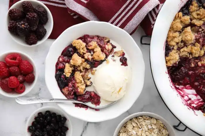 Can’t get enough fruit crisp? Try my Strawberry Crumble, Peach Crisp Recipe, and Best Apple Crumble.