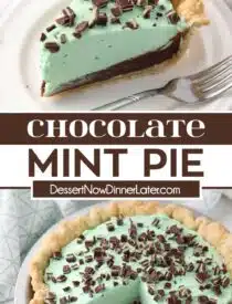 Chop up some Andes mints and sprinkle them on top to make it look pretty and you’ve got a holiday pie all decked out for the dessert table.