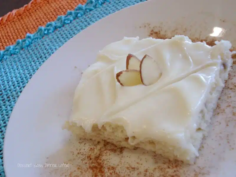 - Cut into 24 pieces and enjoy! Cover and store the cake at room temperature or in the refrigerator depending on personal preference. (Either way is fine. We like ours at room temperature.)