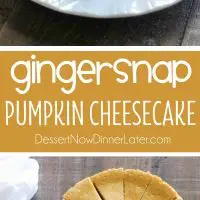 This Gingersnap Pumpkin Cheesecake is full of fall flavors, from the gingersnap cookie crust, to the spiced pumpkin cheesecake. It’s the perfect pumpkin dessert! *PLUS! Tips on how to prevent cracks in your cheesecake!*