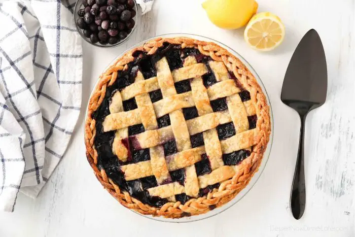 For a blueberry pie that is not runny, it must be baked until the filling bubbles in the center. Don’t be tempted to pull it from the oven too soon!
