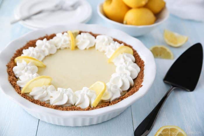 This lemon pie is creamy from sweetened condensed milk and tangy with fresh lemon juice and zest. A buttery graham cracker crust and sweetened whipped cream topping are the perfect accompaniment for this spring dessert.