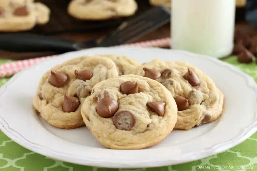 These Soft Baked Chocolate Chip Cookies include a special ingredient to make them perfectly thick, chewy, and soft! Plus tips and techniques for baking the best chocolate chip cookies!